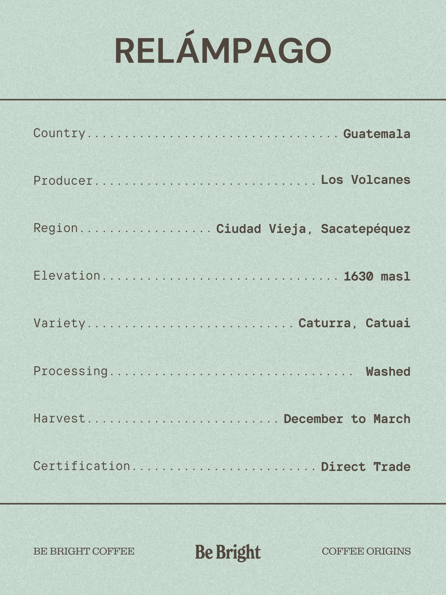 Back at Beneficio La Esperanza, we cupped through a wide range of coffees, but one lot from Relámpago immediately stood out. The cup was layered with dark chocolate and subtle blackberry acidity, showing that signature Guatemalan florality we often describe as marzipan. The finish lingered with comforting notes of nougat and milk chocolate. We’re proud to share this coffee as our first collaboration with the Los Volcanes and Finca Relámpago team and the first taste of an exciting new chapter with this amazing farm.