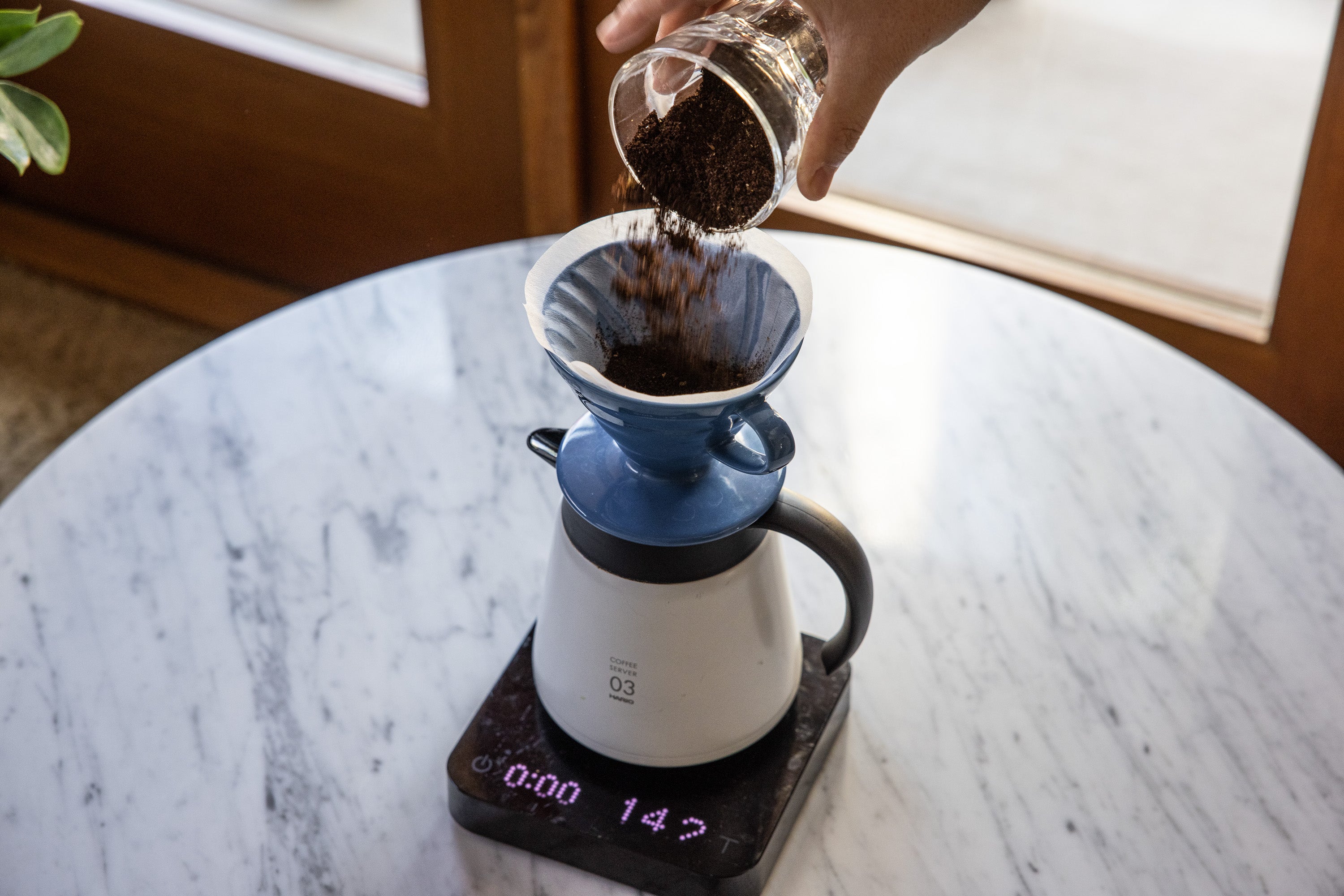The Hario V60, favored by home baristas and cafes alike, is known for its clean, flavorful coffee extractions. Its 60-degree cone shape, ceramic construction, and adjustable flow control offer precision and consistency in every brew.